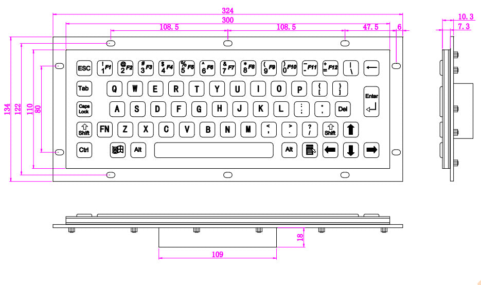 Metal keyboard with front panel of 300*110mm, suitable for outdoor or in door self-service terminals, industrial control etc.