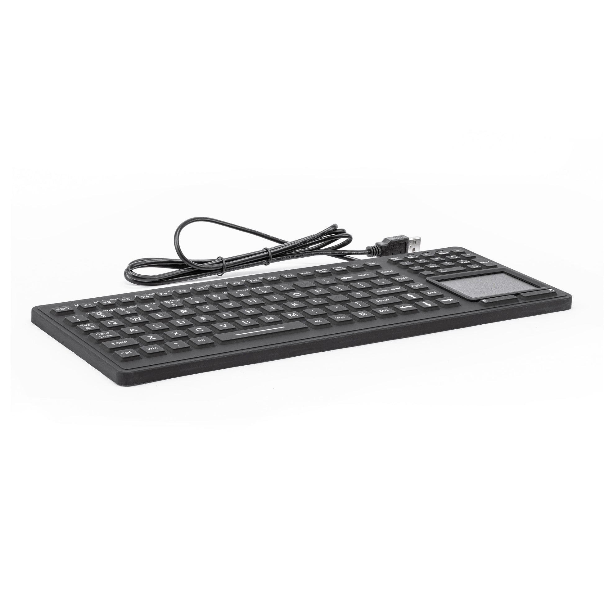 - A specially designed industrial keyboard with touchpad, rigid and rugged, waterproof and washable, made of silicone Rubberized surface provides comfortable use of typing