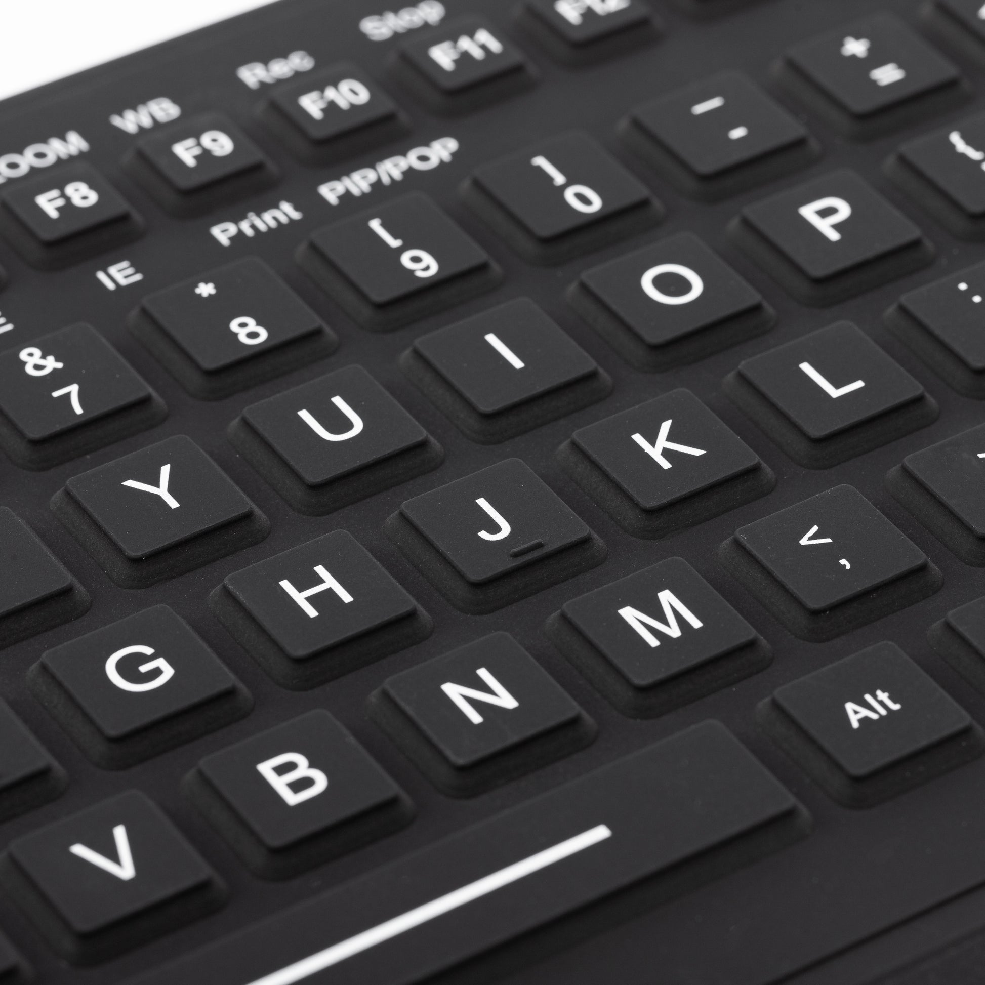 This keyboard is waterproof and contaminate-proof and is designed for industrial applications where water, fluids, dust, and dirt can damage a regular keyboard. These keyboards are sealed with 100% silicone and can be dipped in water and cleaned with soap or other cleaners (non-petroleum based). Our products can be used in Food Service, Industrial, Manufacturing, Marine, Military, and Medical Applications.